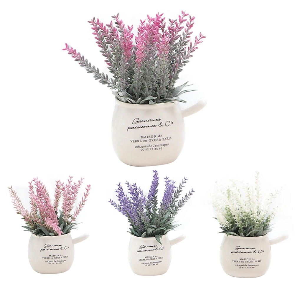 ♥cinglen♥Mini Potted Plant Simulation Lavender Bonsai Desk Office Table Decoration | Shopee Singapore