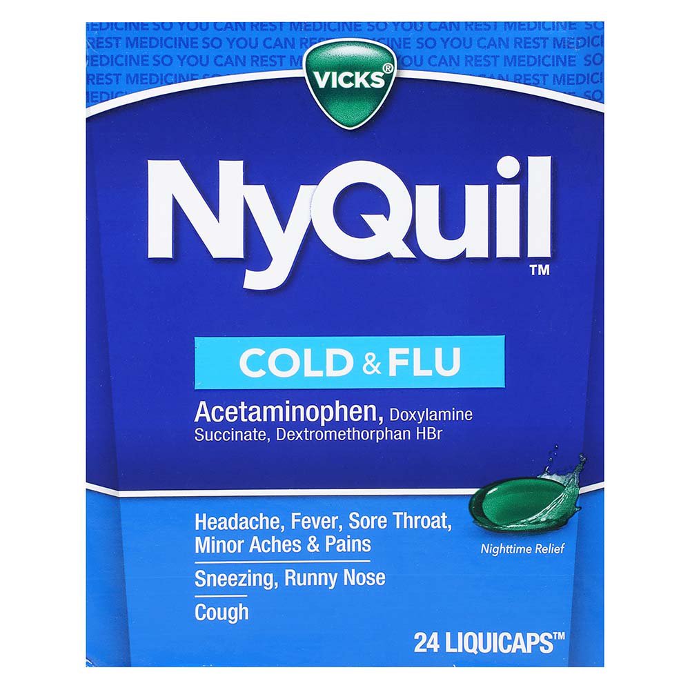 Amazon.com: Vicks NyQuil LiquiCaps, Nighttime Relief of Cough, Cold & Flu Relief, Sore Throat, Fever, & Congestion Relief, 48 LiquiCaps: Health & Personal Care