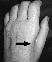 Nerve conduction studies revealed signs of the ulnar neuropathy UN at the wrist affecting exclusively sensory fibers for 6 patients.