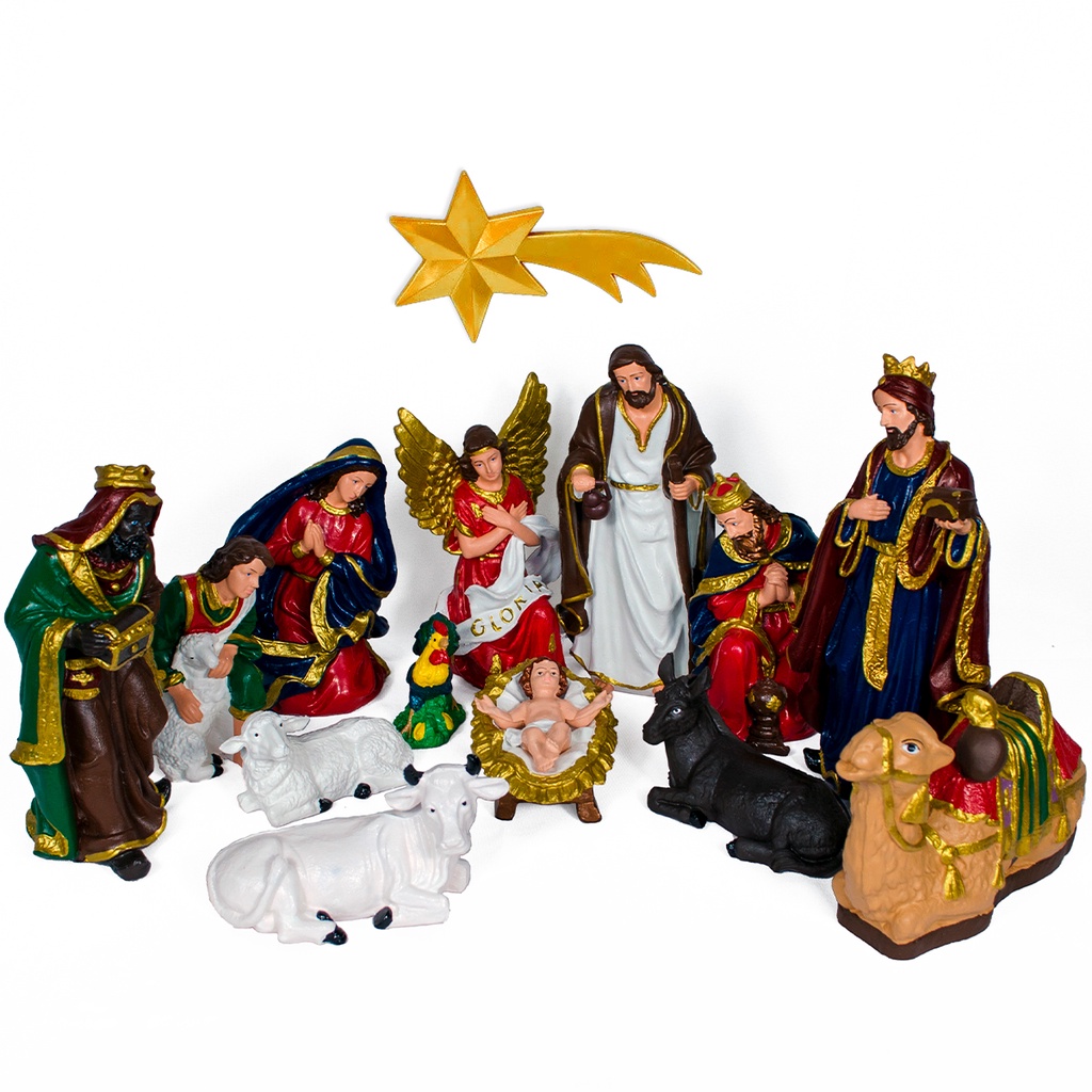 O presépio tradicional é composto por nove peças cujas figuras representam a importância de Cristo. Na véspera de Natal inclua José e Maria no presépio. Presépio José Maria Menino Jesus e Ovelha - Orb Christmas. O presépio criado pelo artista checo Tomáš Krýza é o maior presépio mecânico do mundo. O presépio representa a cena do nascimento de Jesus por isso conta com a presença de alguns animais na cena boi burro ovelhas e cabras e alguns pastores. 299 reais con 89 centavos R 299 89. 33 reais con 32 centavos R 33 32.